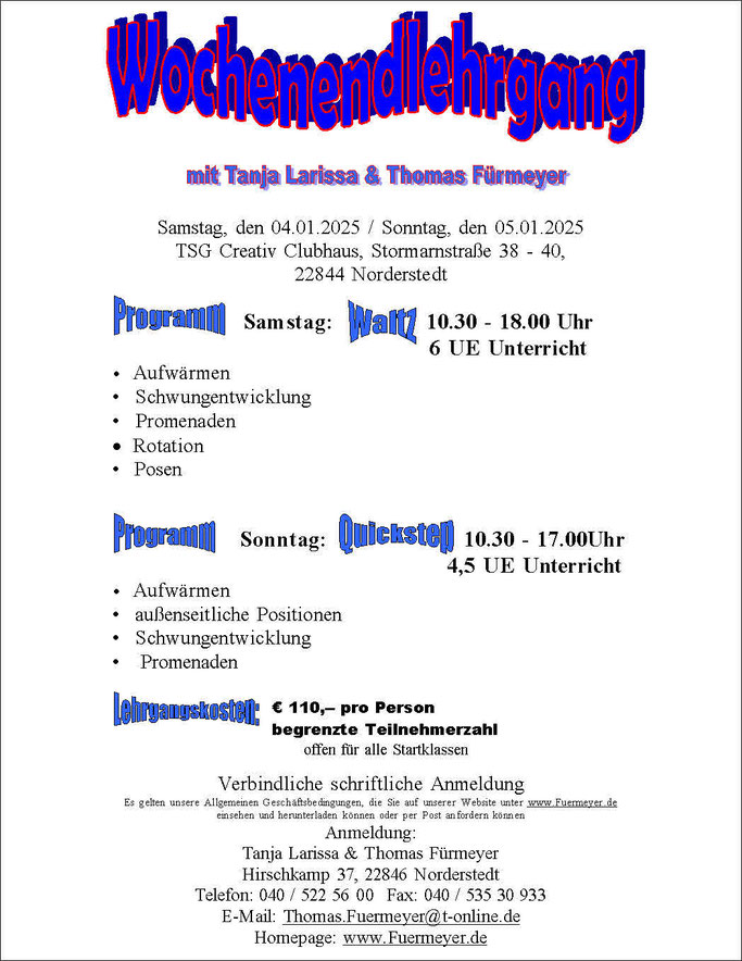 Sonntag: Quickstep 10.30 - 17.00 Uhr, 4,5 UE Unterricht